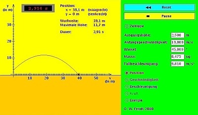 >>> mein Demo-Programm: Schiefer Wurf mit und ohne Luftwiderstand Profi-Version in den Programmiersprachen Python, Perl oder php sende ich auf Anfrage gerne zu. Ohne Grafik.