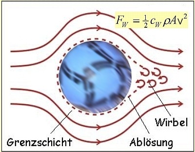 Mit der unvermeidlichen Wirbelbildung nimmt der Luftwiderstand drastisch zu.